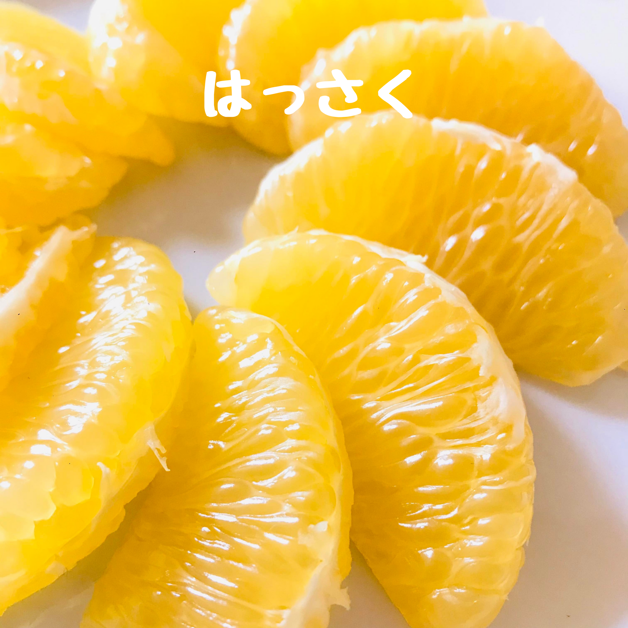 はっさく:果汁たっぷりジューシーで絶妙な酸味と甘みがあります。1粒1粒がしっかりしていて、ぷりぷり感をお楽しみいただけます。種はほんの少しあり。